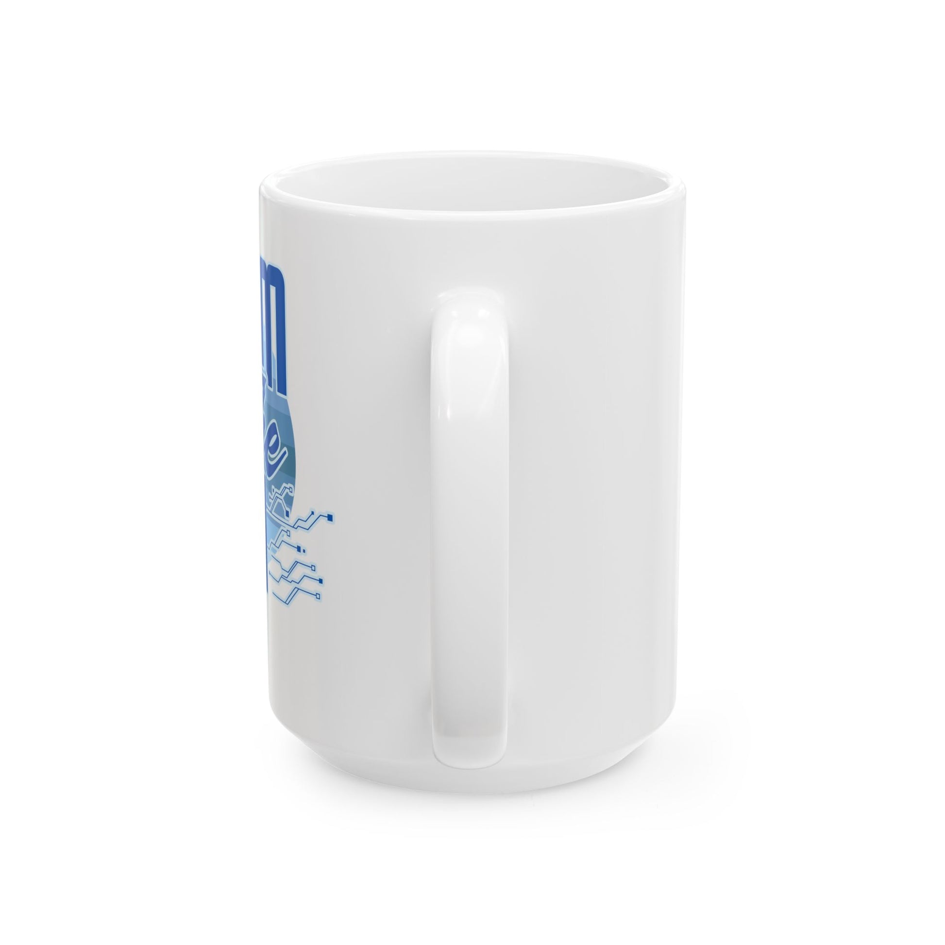 Cyber Love Ceramic Mug, Tech-Inspired Mug, Geek Gift, Computer Lover Cup, Customizable Digital Art, Unique Coffee Mug